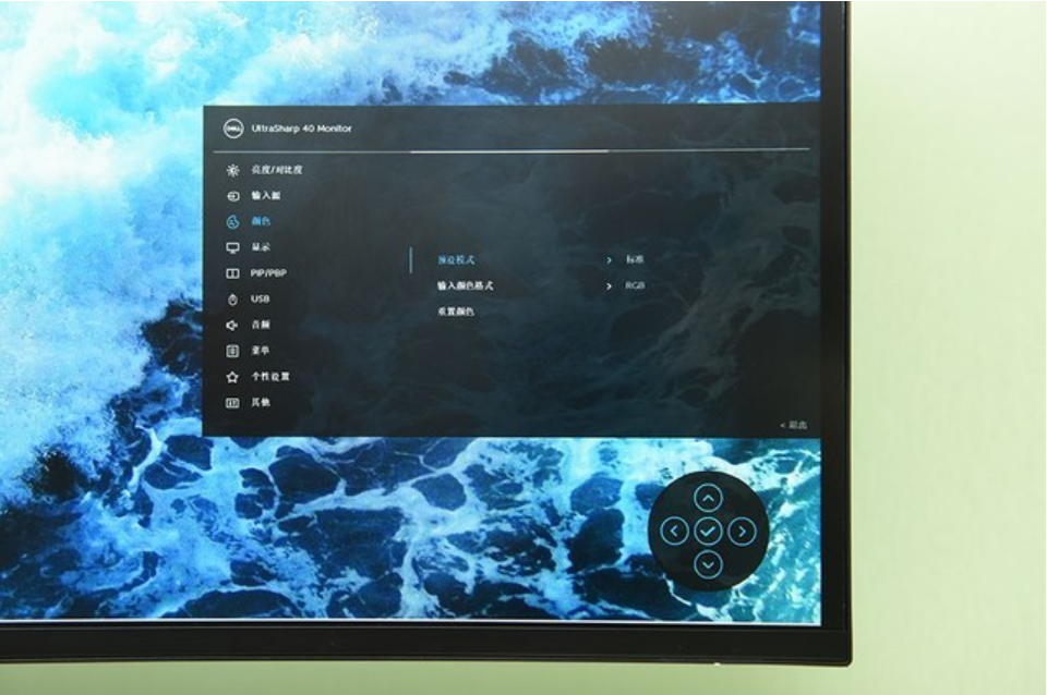 在OSD菜单调节方面,戴尔U4021QW使用了后置五维摇杆的调节方式(右侧按钮为电源开关)。这种调节方式更加符合操作逻辑,与传统的按键调节相比上手难度更小。