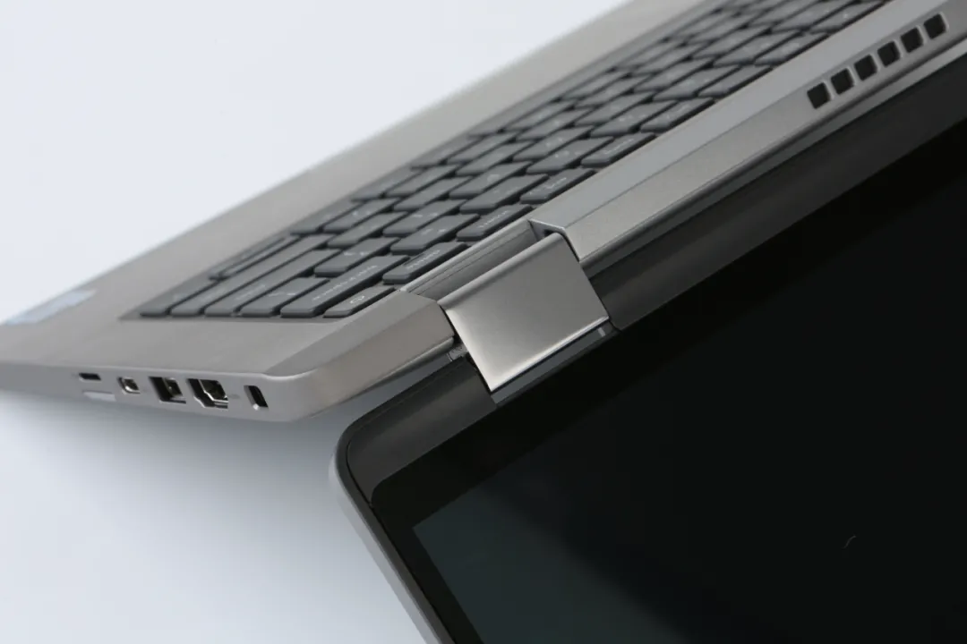 Latitude 7320二合一笔记本采用CNC冲击铝一体成型(另有编织碳纤维版本),A面和C面都是由铝合金一体化成型而来,相对其他通过压制铝片成型的笔记本电脑而言机身结构更加坚固耐用,拥有更加强悍的抗击力。同时,它的A面、C面还经过金属拉丝工艺处理,很有金属质感。黄瓜网站视频测试的这台机器A面顶部加入了4G LTE天线设计,所以A面看上去多了几分“违和感”,不过4G LTE是Latitude 7320二合一笔记本的可选功能,也就是说并非所有Latitude 7320机型都有这个天线设计。